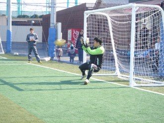 見事シュートをセーブ!!┏━(; ̄▽ ̄)/○/┓ ナイスセーブ!!